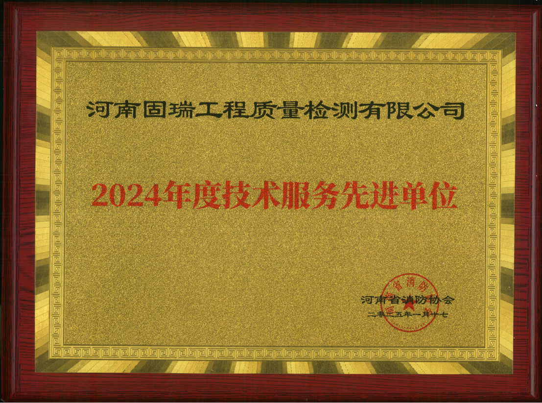 • 熱烈祝賀河南固瑞工程質(zhì)量檢測有限公司榮獲河南省消防協(xié)會2024年度技術(shù)服務(wù)先進單位!!!